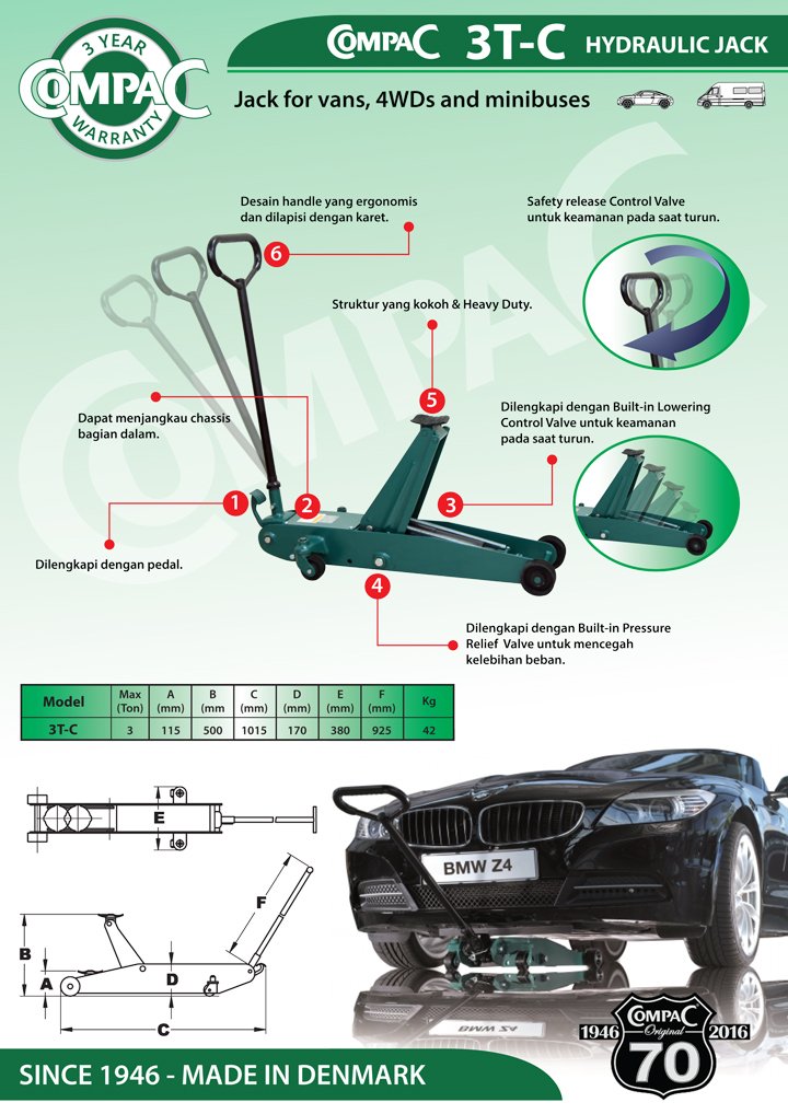 - Katup kontrol penurun pengaman bawaan untuk penurunan yang aman bahkan di bawah beban maksimum.