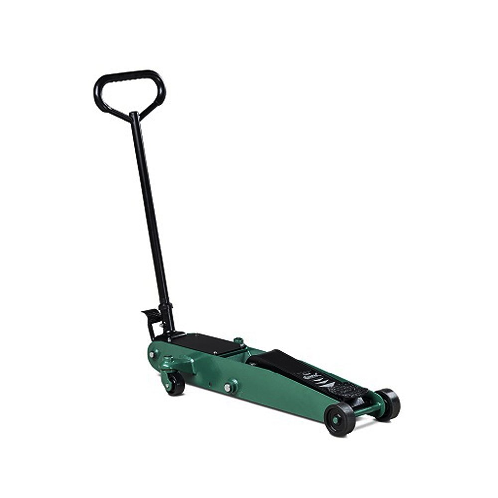 Ergonomically designed handle for operator comfort. Built-in safety lowering control valve for safe lowering even under maximum load. The long reach chassis improves access to lift points far below the vehicle.