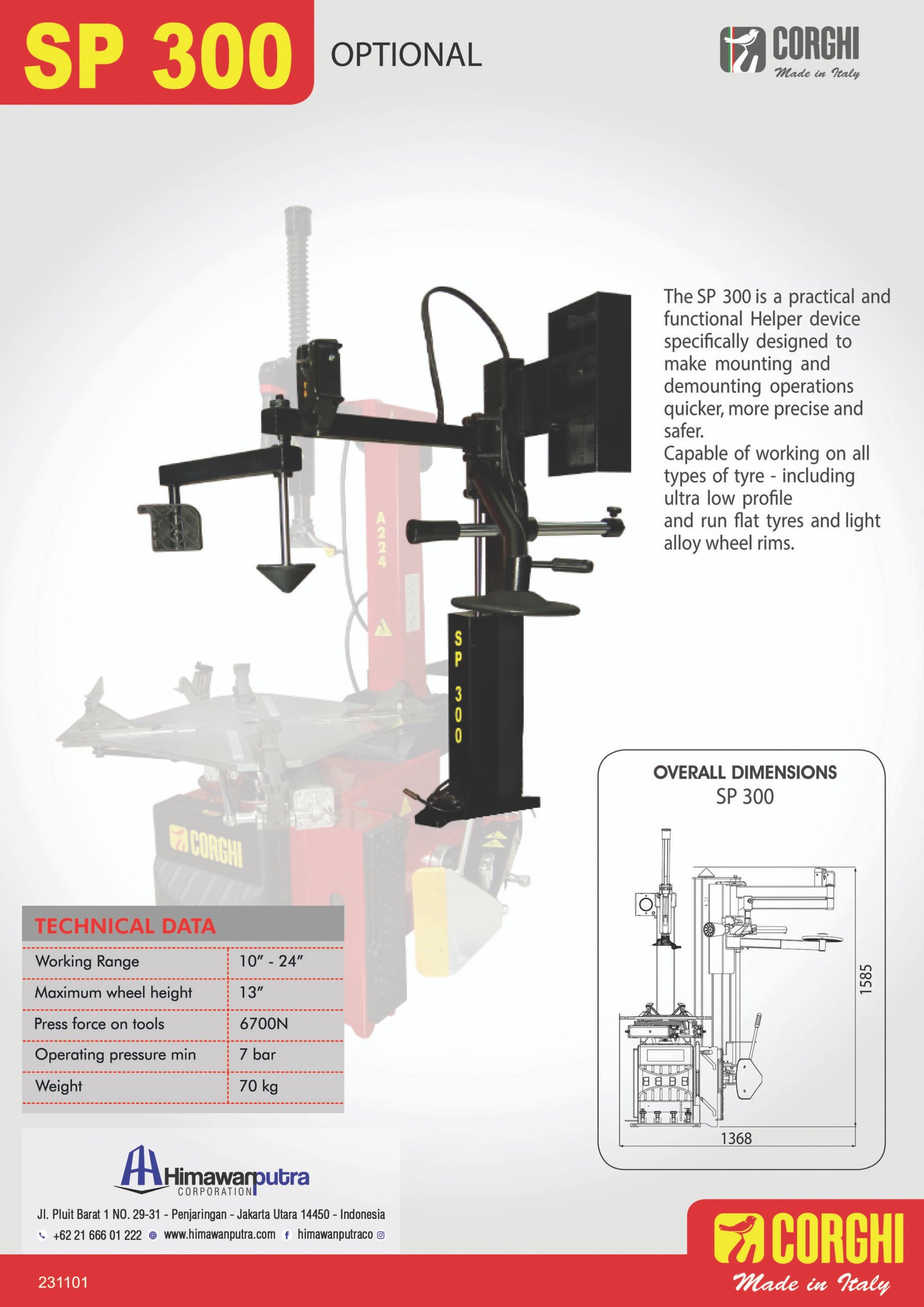 SP 300 adalah perangkat pembantu yang praktis dan fungsional yang dirancang khusus untuk membuat operasi pemasangan dan pembongkaran lebih cepat, lebih tepat, dan lebih aman. Mampu bekerja pada semua jenis ban – termasuk ban ultra low profile dan run flat – dan pelek velg ringan.