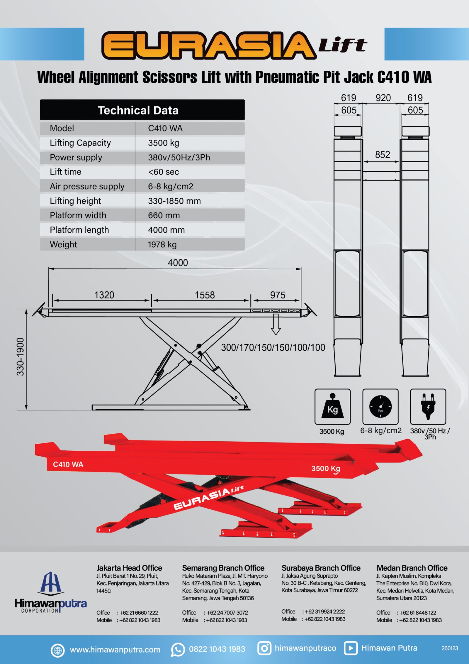 | Lifting Height | 330-1,850 mm |