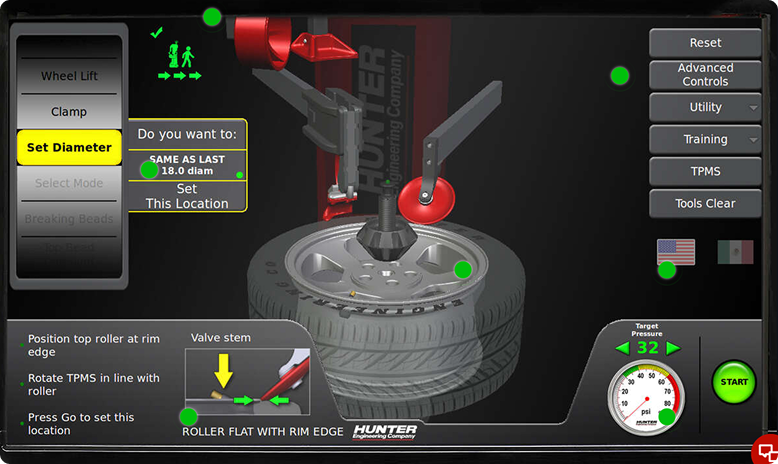 Machine constantly monitors TPMS location. Automatically mounts and demounts with best TPMS procedures.