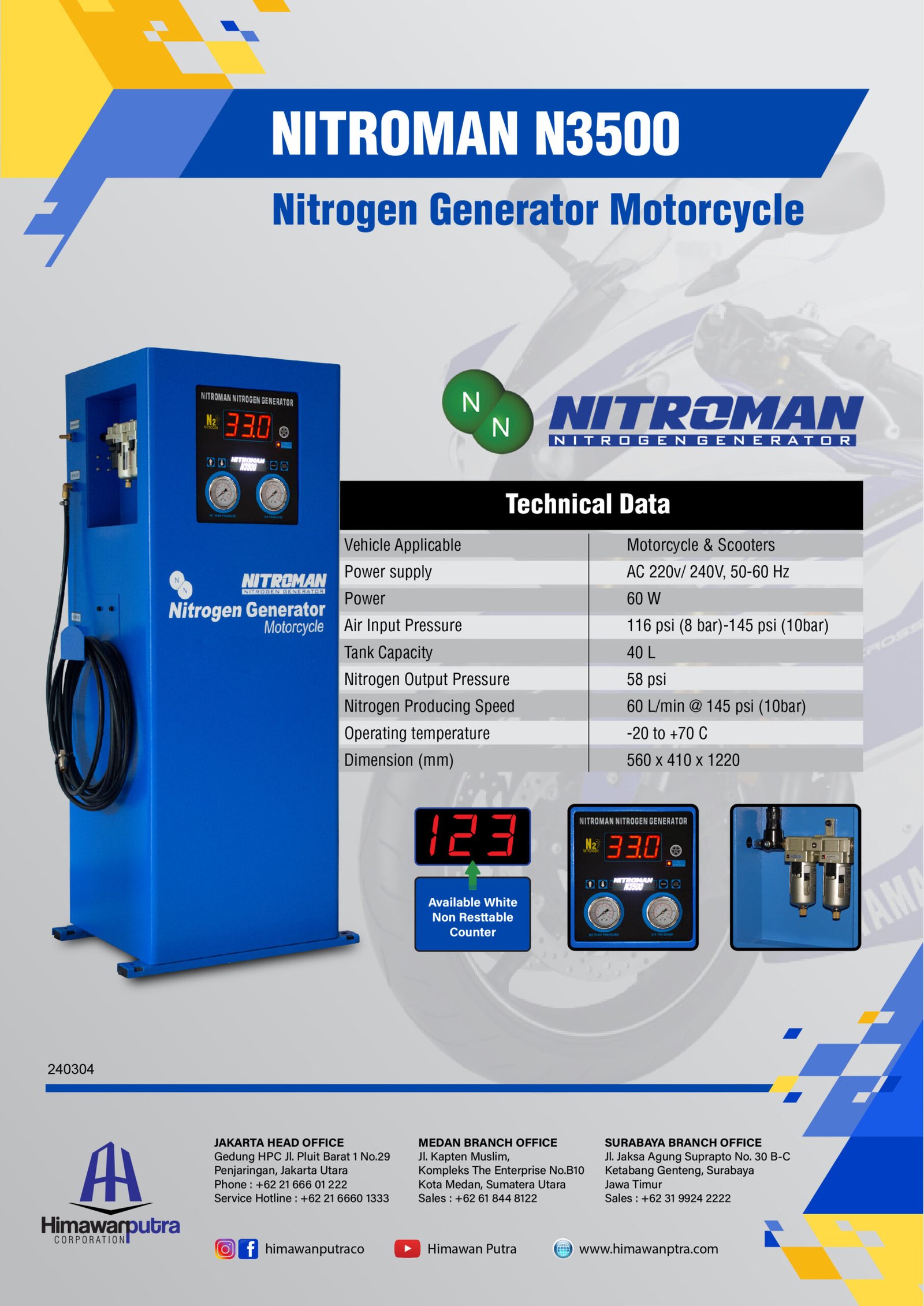 N₂ Producing Speed 60 L / Min (@10 Bar Input)