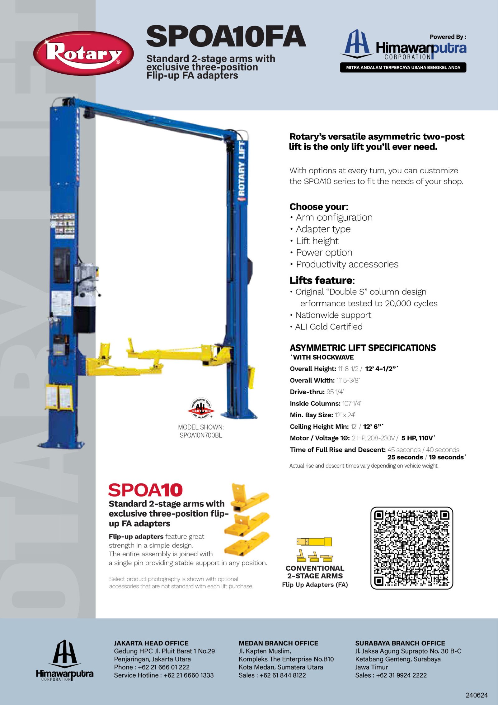 Rotary’s versatile asymmetric two-post lift is the only lift you’ll ever need. With options at every turn, you can customize the SPOA10 series to fit the needs of your shop.